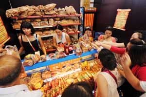 6月29日到7月4日在哈爾濱舉辦的首屆中俄博覽會(huì)上,俄羅斯面包受到歡迎。記者 王建威/攝 |