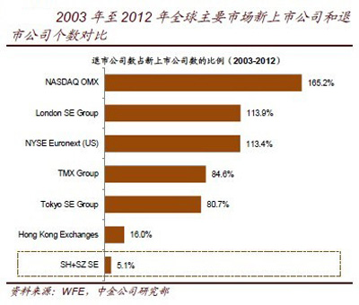 公開資料顯示,自2001年水仙電器、廣東金曼2家公司股票被終止上市交易至今,滬深交易所累計(jì)僅有78家公司退市,僅占目前上市公司總數(shù)目(2545家)的3%,年均退市僅有3家。相比之下,2003年至2007年,紐約證券交易所年均退市率達(dá)6%,納斯達(dá)克年均退市率則為8%。