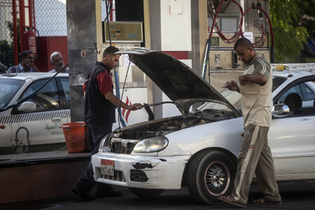 埃及官方通訊社說,埃及政府宣布自5日零時(shí)起大幅提高油價(jià),漲幅最高達(dá)78%。政府作出這一決定是為削減國家對(duì)能源部門的補(bǔ)貼,幫助減輕財(cái)政預(yù)算赤字。 圖為當(dāng)日在埃及首都開羅一個(gè)加油站,一名工人為一輛汽車加油。