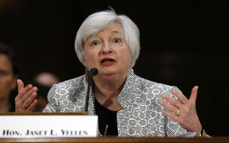美聯(lián)儲(chǔ)主席耶倫15日在美國(guó)國(guó)會(huì)參議院銀行業(yè)委員會(huì)提交美聯(lián)儲(chǔ)半年度報(bào)告,對(duì)美國(guó)經(jīng)濟(jì)現(xiàn)狀和貨幣政策作證詞陳述。耶倫表示,盡管美國(guó)經(jīng)濟(jì)持續(xù)改善,但尚未完全復(fù)蘇,就業(yè)市場(chǎng)疲弱和工資增長(zhǎng)停滯表明在可預(yù)見(jiàn)的未來(lái)一段時(shí)間內(nèi)仍需維持寬松貨幣政策。