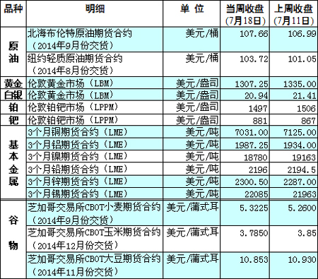 國際大宗商品期貨價格明細(xì)表[2014-7-21]