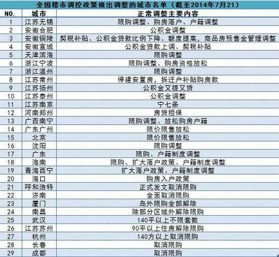 以下是今年以來對樓市調控政策作出調整的城市名單: