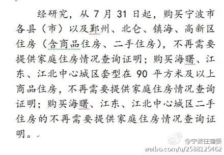 今天下午15:30分,寧波市住建委官方微博發(fā)布消息:寧波正式取消樓市限購。