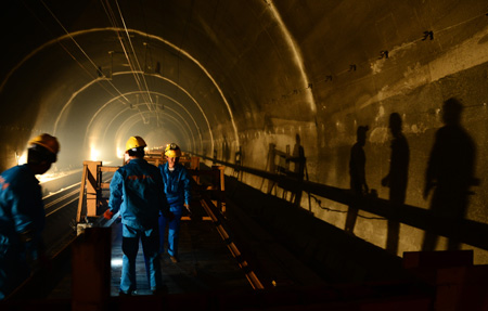 7月30日,來自中鐵一局的近200名施工人員在祁連山1號(hào)隧道內(nèi)抓緊施工(圖二),蘭新鐵路客運(yùn)專線祁連山1號(hào)隧道鋪軌工作線將于31日完成,這標(biāo)志著蘭新鐵路客運(yùn)專線全線鋪軌完成。被譽(yù)為“鋼鐵絲綢之路”的蘭新鐵路客運(yùn)專線,全長(zhǎng)1776公里,設(shè)計(jì)最高運(yùn)營(yíng)時(shí)速達(dá)250公里,是目前世界上一次性建設(shè)里程最長(zhǎng)的高速鐵路,也是我國(guó)首條在高海拔地區(qū)修建的高速鐵路。