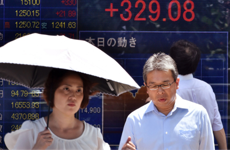 因伊拉克和烏克蘭等地緣政治緊張局勢有所緩和,加之市場認為美軍對伊拉克的軍事行動將是有限的,繼上周五紐約股市三大股指全線收高后,11日,亞太股市多數(shù)上漲。其中,日本東京股市錄得四個月以來最大單日漲幅,日經股指上漲352.15點,收于15130.52點,漲幅為2.38%。印度尼西亞、菲律賓、中國香港等多個地區(qū)股市主要股指漲幅也超過1%。 圖為行人11日走過日本東京一塊股票價格顯示屏前。