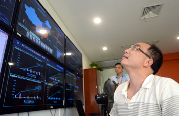 圖為阿里巴巴集團(tuán)的一位技術(shù)人員正在監(jiān)控“實(shí)時(shí)風(fēng)險(xiǎn)監(jiān)控系統(tǒng)”,打擊網(wǎng)上交易中的不誠(chéng)信行為!