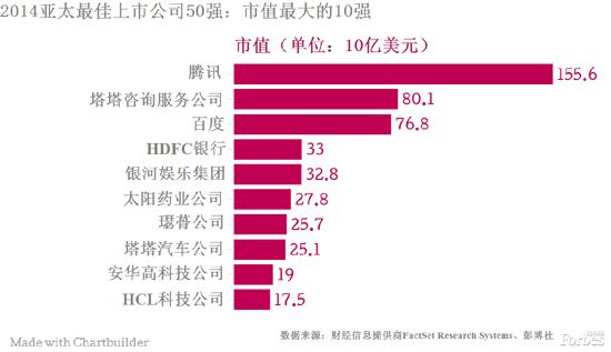 報(bào)道稱(chēng),科技公司在中國(guó)上榜公司中一馬當(dāng)先。榜單上市值最高的是騰訊,為1,556億美元,差不多是排名第二的塔塔咨詢(xún)服務(wù)公司(Tata