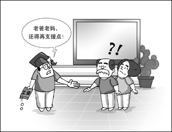 在薪酬捉襟見肘的同時(shí),啃老也成了部分畢業(yè)生不得已的選擇。趕集網(wǎng)發(fā)布《“90后”飯碗報(bào)告》稱,65.9%的2014屆畢業(yè)生在畢業(yè)以后不會(huì)再得到父母的資助,這些人依靠自己的收入實(shí)現(xiàn)了經(jīng)濟(jì)獨(dú)立,不做“啃老族”。其余三成多仍需“啃老”,甚至有5.9%的人每月還會(huì)得到父母1000元以上的經(jīng)濟(jì)資助,這群人中有84%的人沒有找到工作,但是他們的月均開銷卻達(dá)到1553元,比2014年應(yīng)屆生的平均水平高出36%。