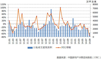 “9月的環(huán)比大增與出讓地塊的起拍價較高有關。不過,成交均價同比下降33%,土地成交均價已連續(xù)四個月同比負增長,且降幅有所擴大!笨簛喚暾f。