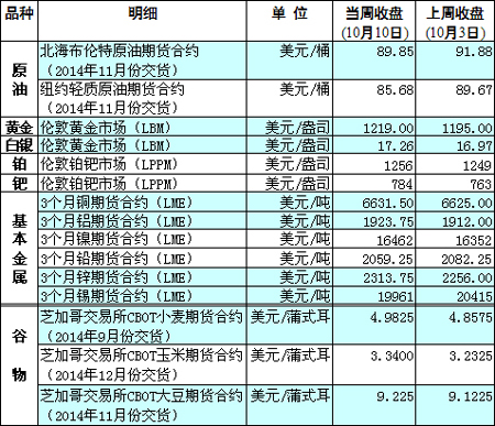 國(guó)際大宗商品期貨價(jià)格明細(xì)表[2014-10-13]