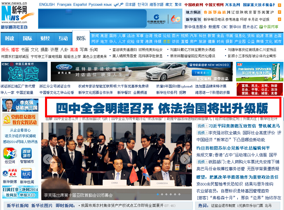 歷史的指針走向又一個(gè)重要時(shí)刻——2014年10月20日,中國(guó)共產(chǎn)黨十八屆四中全會(huì)召開(kāi),將首次以全會(huì)的形式專(zhuān)題研究部署全面推進(jìn)依法治國(guó)。