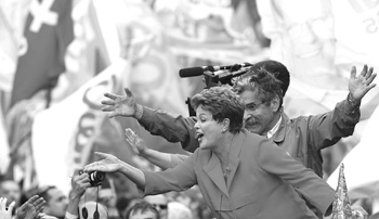 說羅塞夫成為被內(nèi)韋斯和席爾瓦“斗地主”的對象,是因?yàn)樽詮?003年上臺執(zhí)政以來,勞工黨迄今已連續(xù)執(zhí)政12年,是巴西恢復(fù)直接選舉以來執(zhí)政時間最長的政黨。內(nèi)韋斯的社民黨,在2006年和2010年的大選中,均在與勞工黨的角逐中敗北。席爾瓦曾是盧拉政府的環(huán)境部長,但是2009年脫黨后以綠黨候選人身份參加2010年大選,在第一輪投票中獲得約19%的選票;本次代表社會黨參選,在第一輪投票中獲得約21%的選票。羅塞夫在第一輪投票中獲得約42%的選票,但是內(nèi)韋斯獲得的34%的選票與席爾瓦的選票相加,已經(jīng)超過羅塞夫。所以在第一輪和第二輪中間的三周時間里,羅塞夫和勞工黨使出渾身解數(shù),希望能夠爭取席爾瓦支持者手中的選票。