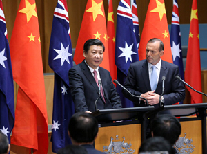 | 圖為國家主席習(xí)近平當(dāng)日在堪培拉與澳大利亞總理阿博特共同會見記者。 |
