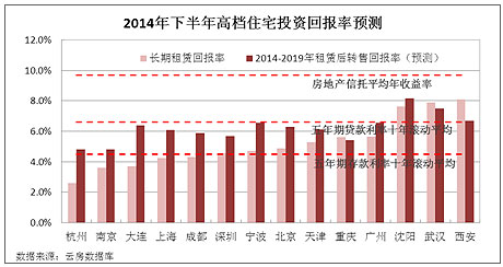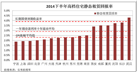 參照高檔住宅靜態(tài)租賃回報率判斷投資時機。