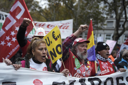 西班牙民眾大規(guī)模游行反對財政緊縮