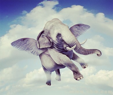 但令人錯愕的是,迎風(fēng)而飛的不是豬是大象。