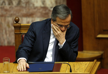 反對(duì)黨上臺(tái)執(zhí)政的可能性推升了希臘債務(wù)違約風(fēng)險(xiǎn),也使得希臘與歐元集團(tuán)的關(guān)系面臨嚴(yán)峻考驗(yàn)。希臘總理安東尼斯·薩馬拉斯日前警告稱,激進(jìn)左翼聯(lián)盟黨的反緊縮主張將導(dǎo)致希臘陷入債務(wù)違約和破產(chǎn)的境地,如果該黨贏得選舉,那么經(jīng)濟(jì)遭受重創(chuàng)的希臘可能被迫退出歐元區(qū)。