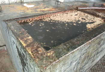 在中器環(huán)保的地溝油收集池中,臟臭的地溝油被集納起來等待處置,走進(jìn)這個(gè)大廳,一股濃烈的異味撲面而。周琳/攝