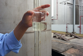 記者在位于上海市星火開發(fā)區(qū)的中器環(huán)?吹,預(yù)處理間有數(shù)個(gè)放置地溝油的大池子,油品顏色深、黏稠,走進(jìn)去就能聞到濃濃的異味;而在經(jīng)過預(yù)處理、加工、蒸餾等環(huán)節(jié)后的成品車間,水龍頭中放出的就是可直接用于燃料油的產(chǎn)品,顏色透明,幾乎沒有氣味。