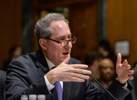 1月27日,在美國(guó)首都華盛頓,美國(guó)貿(mào)易代表邁克爾·弗羅曼就2015年美國(guó)貿(mào)易政策議程在國(guó)會(huì)作證。 當(dāng)日,美國(guó)貿(mào)易代表邁克爾·弗羅曼敦促?lài)?guó)會(huì)授予奧巴馬政府“快速道”授權(quán),以加快美國(guó)與亞太和歐盟國(guó)家的自貿(mào)談判。