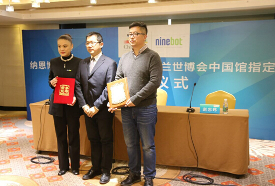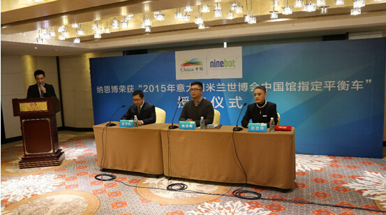 2015年2月3日,中國國際貿(mào)易促進委員會正式授予Ninebot平衡車系列產(chǎn)品為“2015年意大利米蘭世博會中國館指定平衡車”,同時授予納恩博公司為“2015年意大利米蘭世博會中國館指定用品供應(yīng)商”。宣告Ninebot作為中國平衡車產(chǎn)業(yè)唯一入駐品牌,向全世界展現(xiàn)中國智能短途交通行業(yè)的高速發(fā)展,為米蘭世博會中國館增添一道靚麗風景。