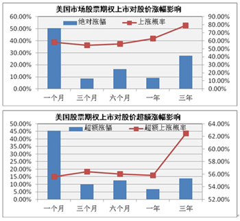 | 美國(guó)市場(chǎng)期權(quán)上市后標(biāo)的證券價(jià)格表現(xiàn) |