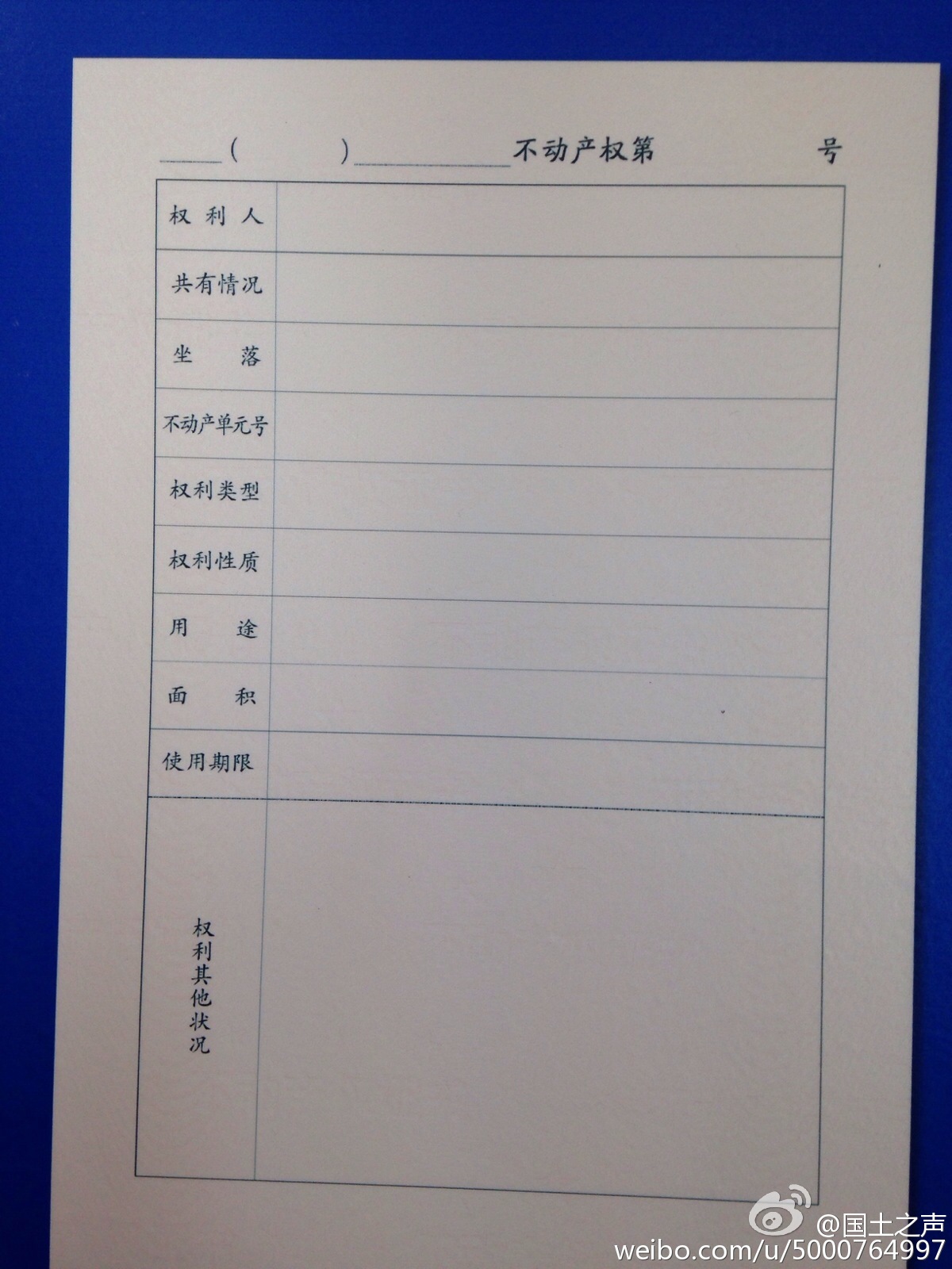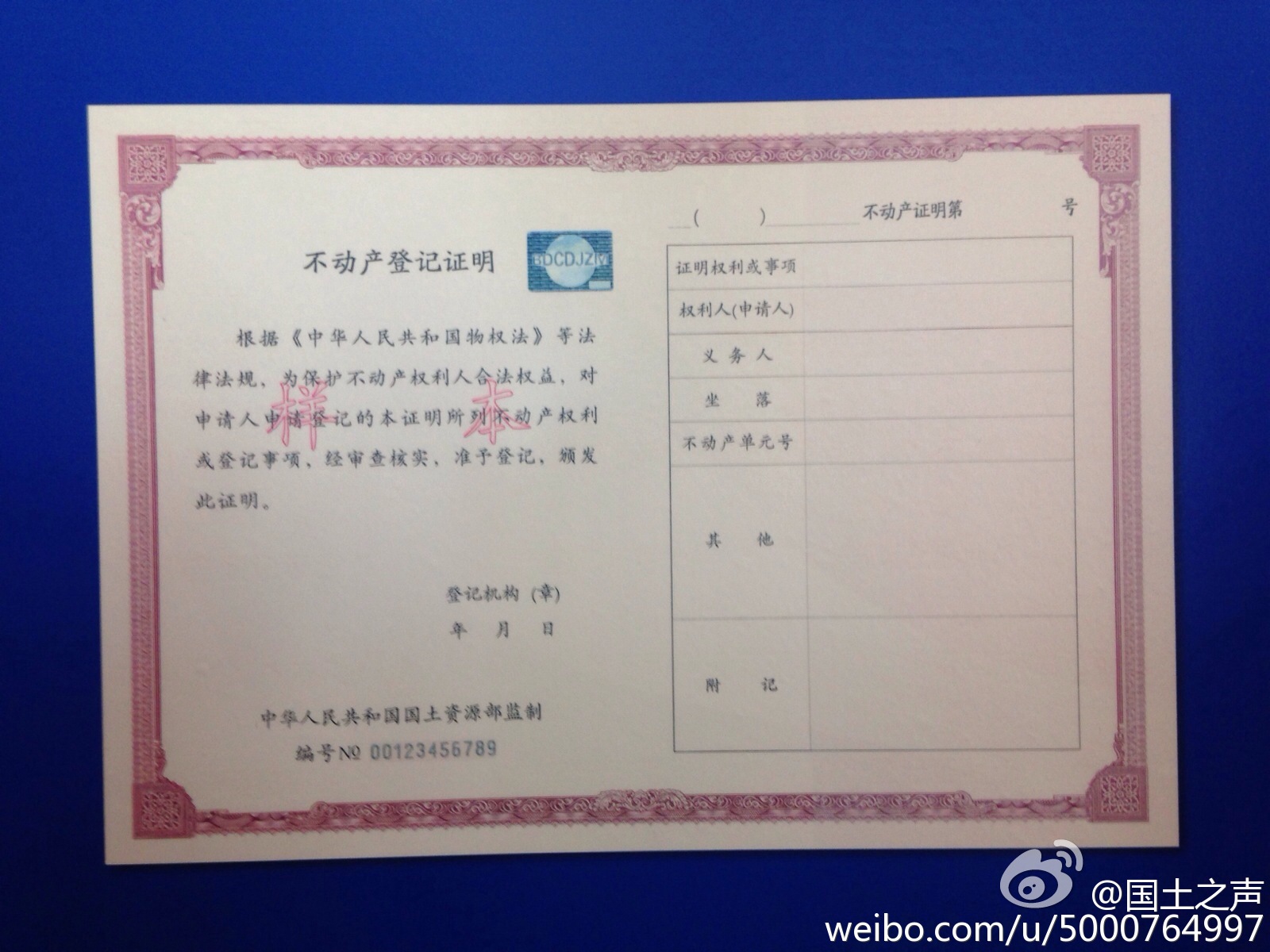 摘要:國土資源部公布了《不動產(chǎn)權(quán)證書》、《不動產(chǎn)登記證明》的樣本。