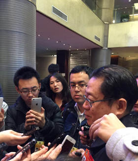 3月2日,《經(jīng)濟(jì)參考報(bào)》記者全天蹲守在鐵道大廈。當(dāng)天赴經(jīng)濟(jì)組報(bào)到的委員不多,大多數(shù)時(shí)間,記者們只能等候在簽到大廳,注視著大廳入口。接近下午5時(shí)左右,眼看天色開(kāi)始發(fā)暗,突然,中國(guó)建設(shè)銀行原監(jiān)事長(zhǎng)謝渡揚(yáng)、中華全國(guó)供銷(xiāo)合作總社理事會(huì)副主任趙顯人及李克穆3位經(jīng)濟(jì)組委員先后出現(xiàn),形成了記者“圍堵”的一個(gè)小高潮。李克穆更是在記者的追問(wèn)下放出重磅消息,稱(chēng)對(duì)互聯(lián)網(wǎng)金融應(yīng)該實(shí)施審慎監(jiān)管。