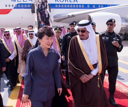 據(jù)沙特國家通訊社報道,薩勒曼當(dāng)天與樸槿惠就雙邊關(guān)系舉行會談,雙方表示將進(jìn)一步加強(qiáng)在各個領(lǐng)域的友好合作。會談后,在薩勒曼和樸槿惠的主持下,兩國相關(guān)部門簽署了關(guān)于海洋運(yùn)輸和核能建設(shè)的合作諒解備忘錄。