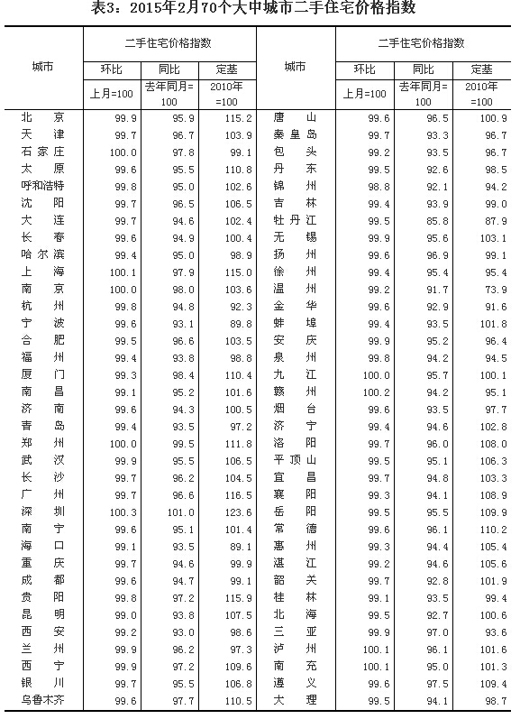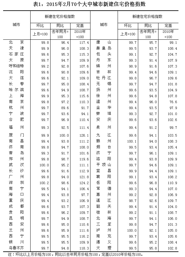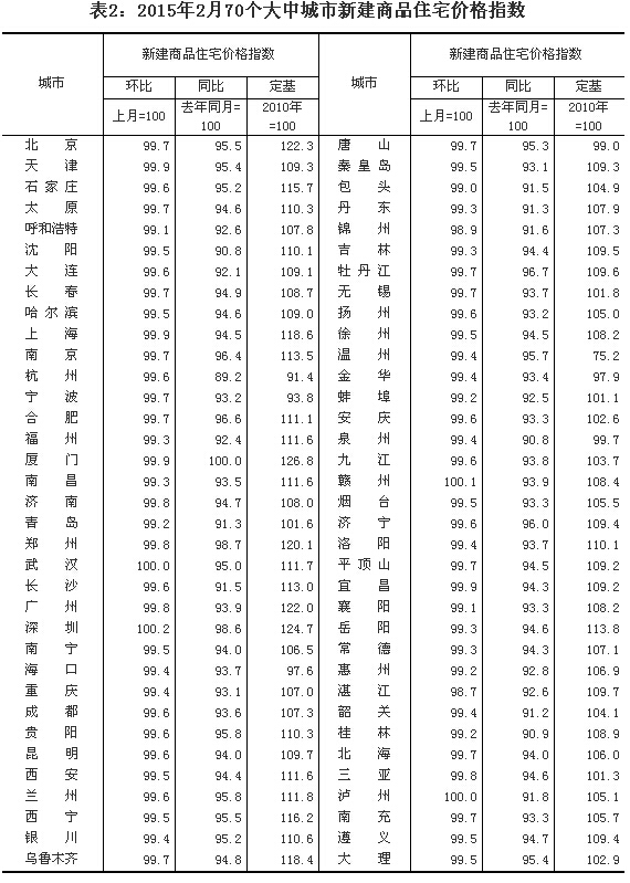 2015年2月份70個(gè)大中城市住宅銷售價(jià)格變動(dòng)情況