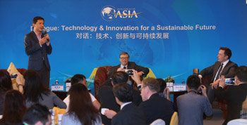 在博鰲亞洲論壇的最后一日,蓋茨、特斯拉汽車CEO埃隆·馬斯克和百度總裁李彥宏進(jìn)行了一場主題為“技術(shù)、創(chuàng)新與可持續(xù)發(fā)展”的討論。李彥宏通過百度貼吧搜集了500多個問題,代表中國網(wǎng)友向兩位國際大咖發(fā)問。