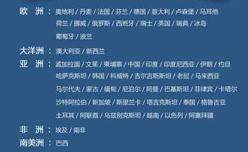 截至2015年4月15日,3月31日前提交加入申請的國家均已經通過多邊征求意見的程序,正式成為亞投行意向創(chuàng)始成員國。亞投行意向創(chuàng)始成員國共有57個,其中域內國家37個、域外國家20個,涵蓋亞洲、大洋洲、歐洲、拉美、非洲等五大洲。
