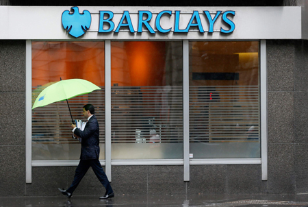 美國(guó)和英國(guó)的監(jiān)管部門20日表示,已和六家大型跨國(guó)銀行達(dá)成總計(jì)約58億美元的和解協(xié)議,以了結(jié)其操縱外匯市場(chǎng)的指控。這六家銀行是巴克萊、摩根大通、花旗、蘇格蘭皇家銀行、瑞銀和美國(guó)銀行。 圖為一名男子走過英國(guó)倫敦市中心的一家巴克萊銀行。