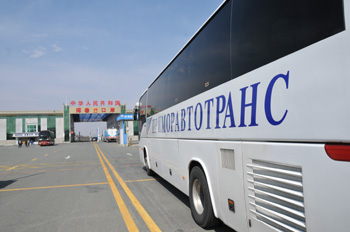 | 一輛俄羅斯客車駛?cè)氍q春口岸 |