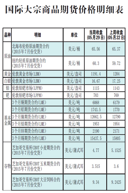 · 國際大宗商品期貨價格明細表[2015-5-25]