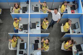 貨車幫創(chuàng)始人戴文建在貴陽貨車幫科技有限公司內(nèi)與員工一起合影。記者 歐東衢 攝 |