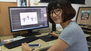 ??? 圖為一位設(shè)計(jì)師在北京“十月動(dòng)畫工坊”工作室展示電影《大圣歸來》的設(shè)計(jì)稿。記者 吳凱翔 攝 |