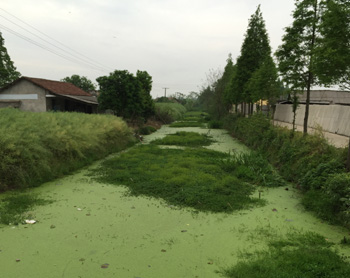 在洞庭湖腹地的安鄉(xiāng)縣安豐鄉(xiāng)出口洲,房前屋后是溝渠和魚塘,但“處處是水卻不能用”。溝渠里飄著厚厚一層綠藻,河堤上堆滿色彩豐富的生活垃圾,撥開綠藻,一股惡臭撲鼻而來,令人作嘔。 記者 周楠/攝 |