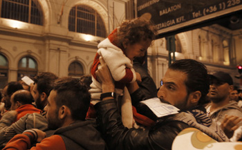 9月8日,中東地區(qū)難民在布達(dá)佩斯克列蒂火車站等待前往維也納的火車?!⌒氯A社/俄新 |