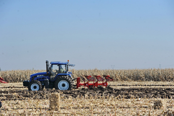 10月14日,一臺(tái)土地深松機(jī)在吉林省榆樹市環(huán)城鄉(xiāng)萬龍村的田間作業(yè)。 新華社記者 張楠/攝