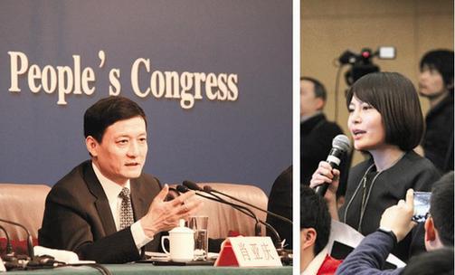 3月12日,十二屆全國(guó)人大四次會(huì)議新聞中心舉行記者會(huì)。國(guó)資委主任肖亞慶(左圖)在回答《經(jīng)濟(jì)參考報(bào)》記者楊燁(右圖)提問(wèn)時(shí)表示,去年央企整體利潤(rùn)為6.9%的負(fù)增長(zhǎng)。在經(jīng)濟(jì)下行壓力下,今年以來(lái),央企將壓力轉(zhuǎn)化為動(dòng)力,1至2月份,央企利潤(rùn)增長(zhǎng)了4.7%。他說(shuō),央企今年的情況相對(duì)穩(wěn)定,各個(gè)央企在穩(wěn)增長(zhǎng)和提效益方面也做了大量工作。不過(guò),從部分行業(yè)目前所處的狀況來(lái)看,恐慌心理比下行壓力更可怕,并有可能帶來(lái)更大的下行。我國(guó)市場(chǎng)很大,關(guān)鍵是從央企開(kāi)始,振奮精神,真抓實(shí)干,要把產(chǎn)品質(zhì)量提高,把成本降下來(lái)。????本報(bào)記者 張莫 攝