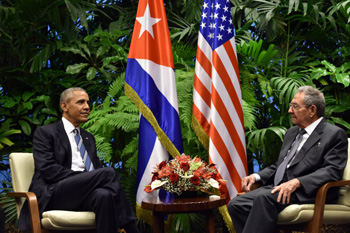 2009年奧巴馬入主白宮后,推動(dòng)改善美古關(guān)系。2014年12月,兩國(guó)宣布開(kāi)啟關(guān)系正?;M(jìn)程。2015年7月,兩國(guó)宣布恢復(fù)外交關(guān)系并決定互開(kāi)使館。2014年底兩國(guó)關(guān)系解凍以來(lái),兩國(guó)高層互訪頻繁,超過(guò)半個(gè)世紀(jì)總和,美國(guó)逐步放松了在旅行、商務(wù)、匯款等方面對(duì)古巴的制裁措施,但至今沒(méi)有全面解除對(duì)古巴的封鎖和禁運(yùn)。