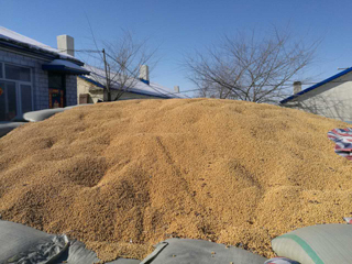 價(jià)補(bǔ)分離在大豆政策已經(jīng)先行。由于大豆價(jià)格持續(xù)走低,加之進(jìn)口大豆沖擊,不少規(guī)模種植戶手中的大豆至今難以出售。近日,記者來到黑龍江省北安市鄉(xiāng)東安村程鵬文家中,200多噸大豆在前后兩個(gè)院里堆成了“小山包”,藍(lán)色的帆布蓋在上面。為防止豆子因氣溫升高而發(fā)霉,程鵬文找來鄰居幫忙,把帆布掀開,讓豆子曬曬太陽,通通風(fēng)。