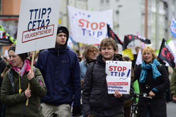 美國(guó)總統(tǒng)奧巴馬4月底訪問德國(guó)期間,就遭遇了很多德國(guó)人的強(qiáng)烈抗議。德國(guó)副總理、社會(huì)民主黨領(lǐng)導(dǎo)人加布里爾直言不諱地表示,他感覺奧巴馬是來“推銷美國(guó)貨的”,“TTIP就是為了讓歐洲人買盡可能多的‘美國(guó)制造’”。加布里爾表示,假使美國(guó)不讓步,德國(guó)就不會(huì)簽署TTIP。