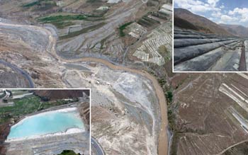 云南省昆明市東川區(qū)的小江和直接建在河谷里的兩座尾礦庫近景。金沙江一級(jí)支流——小江,2008年以前的尾砂直排和特殊地質(zhì)地貌,使小江成為一條泥沙河,每年有超過3000萬噸泥沙經(jīng)小江注入金沙江。記者 周華/攝 |