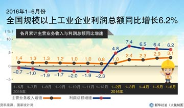國家統(tǒng)計局7月27日發(fā)布的工業(yè)企業(yè)財務數(shù)據(jù)顯示,1至6月份,規(guī)模以上工業(yè)企業(yè)利潤同比增長6.2%,增速比1至5月份回落0.2個百分點,主要受3月份較高增長的影響。其中,6月份利潤同比增長5.1%,增速比5月份加快1.4個百分點。專家表示,6月份工業(yè)企業(yè)利潤增長加快,主要受工業(yè)生產(chǎn)和銷售增長有所加快,產(chǎn)品價格降幅繼續(xù)收窄影響,工業(yè)企業(yè)降本減負效果顯現(xiàn),庫存壓力繼續(xù)減緩。但是,制約企業(yè)效益向好的不利因素仍然存在,目前的利潤增長不夠均衡,新增利潤集中于少數(shù)行業(yè),未來整體工業(yè)生產(chǎn)難言樂觀。