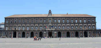 1494年,法國國王查理八世入侵意大利,導(dǎo)致許多意大利城市陷入混亂,那不勒斯也不例外。這場危機直接導(dǎo)致了西班牙阿拉貢王朝在那不勒斯統(tǒng)治的結(jié)束。16世紀(jì)早期,那不勒斯再次成為西班牙帝國的一個重要中心,其地位僅次于帝國新首都馬德里,那不勒斯的文化藝術(shù)也進入一個新的發(fā)展階段。西班牙帝國委派的總督不遺余力地打造那不勒斯,使那不勒斯的城市景觀發(fā)生很大變化。總督佩多羅·德·托萊多(Pedro de Toledo, 1532年-1554年任職)在那不勒斯進行大規(guī)模的城市改造,他下令拓寬和拉直一些狹窄的街道,并拆除伸向大街的門廊和陽臺。接著,他在那不勒斯西邊修建了一個用于安頓西班牙士兵的“西班牙區(qū)”。他還下令修建了一條以他自己名字命名的大道——托萊多大街(via Toledo)。這條筆直的大街兩邊集中了該城古老貴族家族的宮邸,堪稱那不勒斯的門面。佩德羅在靠近新城堡的地方修建了總督府,此后的歷屆那不勒斯總督都刻意將其打造的更巍峨壯觀,以此展示總督的權(quán)力和西班牙帝國的威嚴(yán)。在17世紀(jì)晚期,建筑師多梅尼科·豐塔納(Domenico Fontana)把這座總督府徹底改造,此后它成了西班牙國王菲利普三世的行宮(圖4)。