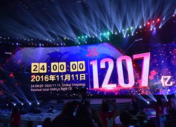 | 圖為11月12日,在廣東深圳舉行的活動(dòng)上,大屏幕顯示天貓“雙十一”全天成交額超過1207億元。新華社記者 黃宗治/攝? |