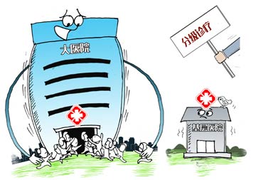 “老百姓扎堆去大醫(yī)院看專家,本已稀缺的三甲醫(yī)院和專家資源完全靠市場配置。在短暫享受改革紅利后,很快出現(xiàn)大醫(yī)院人滿為患、小醫(yī)院門可羅雀的現(xiàn)象,醫(yī)患矛盾凸顯?!碧飩ァ⑽榧较娴仁茉L者說,解決這一矛盾,就醫(yī)模式必須改,以“指導(dǎo)就醫(yī)”為目標(biāo)的分級診療是主攻方向。
