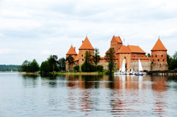 每到一個(gè)地方,我必先買(mǎi)些當(dāng)?shù)氐拿餍牌R粊?lái)寄給牽掛的人很浪漫,二來(lái)明信片上的風(fēng)光一般都是必去之處。特拉凱便是這樣。這個(gè)位于維爾紐斯城外20多公里處的一個(gè)精巧小鎮(zhèn),以加爾瓦湖心島上的特拉凱城堡聞名。建造于1409年的特拉凱城堡,以粉紅色磚砌成,佇立于湖中,遠(yuǎn)觀真恍如進(jìn)入童話,又不禁讓人想起那句“宛在水中央”來(lái)。